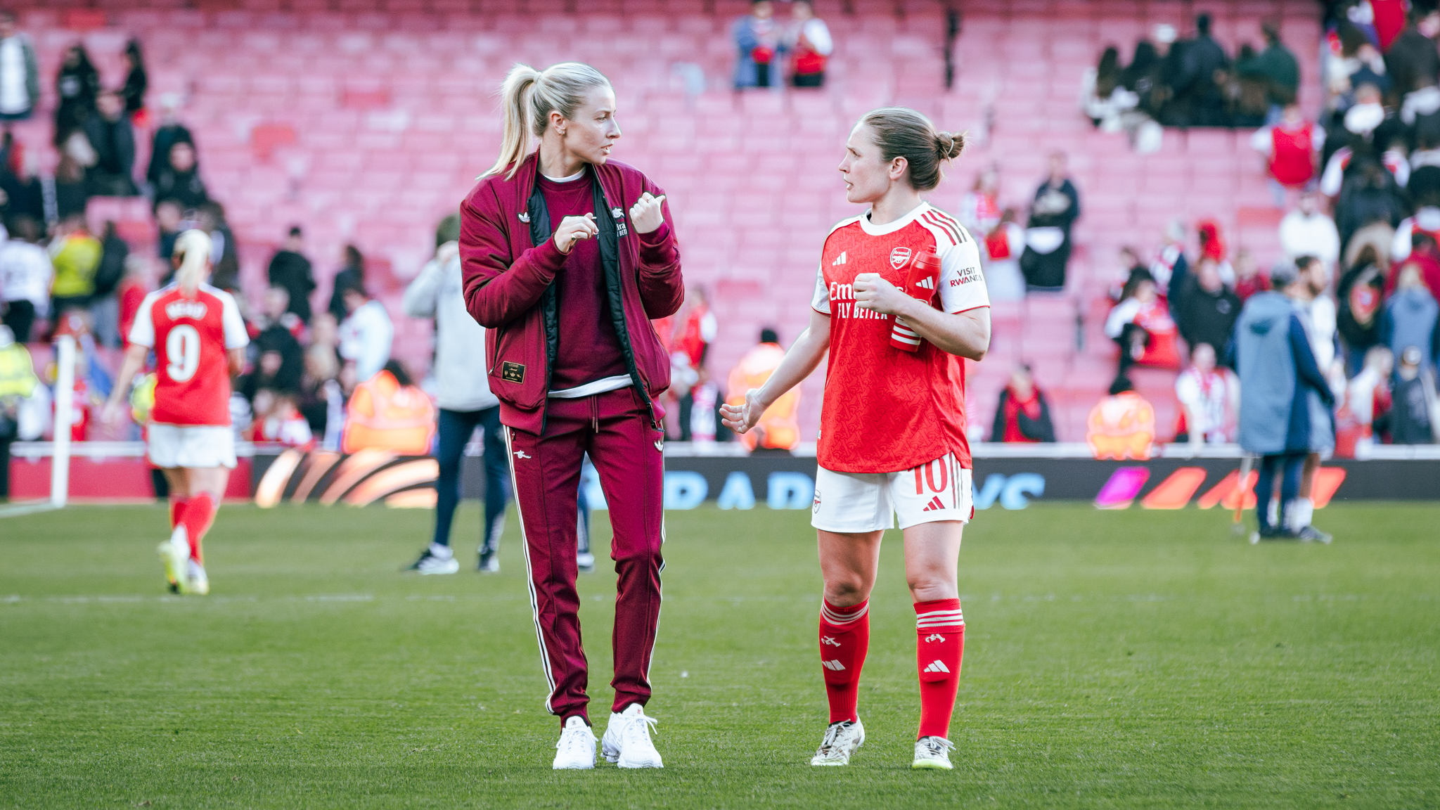 Renee Slegers provided an update on the duo: “Both Kim and Leah will be in the squad tomorrow, so that’s really positive news. They’re not fit enough to play 90 minutes- if you look at the difference, Leah has been away for much longer than Kim, so Kim is available for more minutes.”