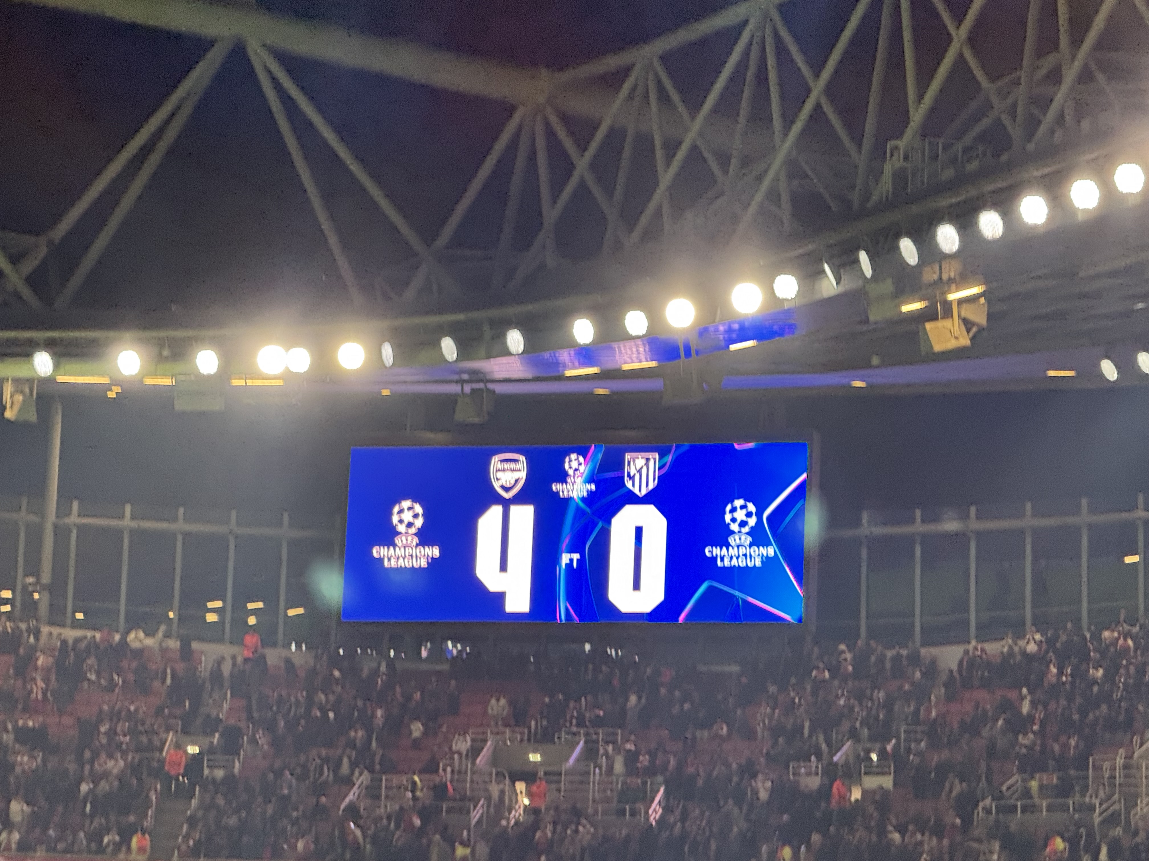 I would wish all you Gunners a safe trip home, but judging by the stands as the whistle goes it looks like you lot have beaten me home already, not to matter, it’s a glorious Champions League result tonight, we move onto Crystal Palace, COYG !